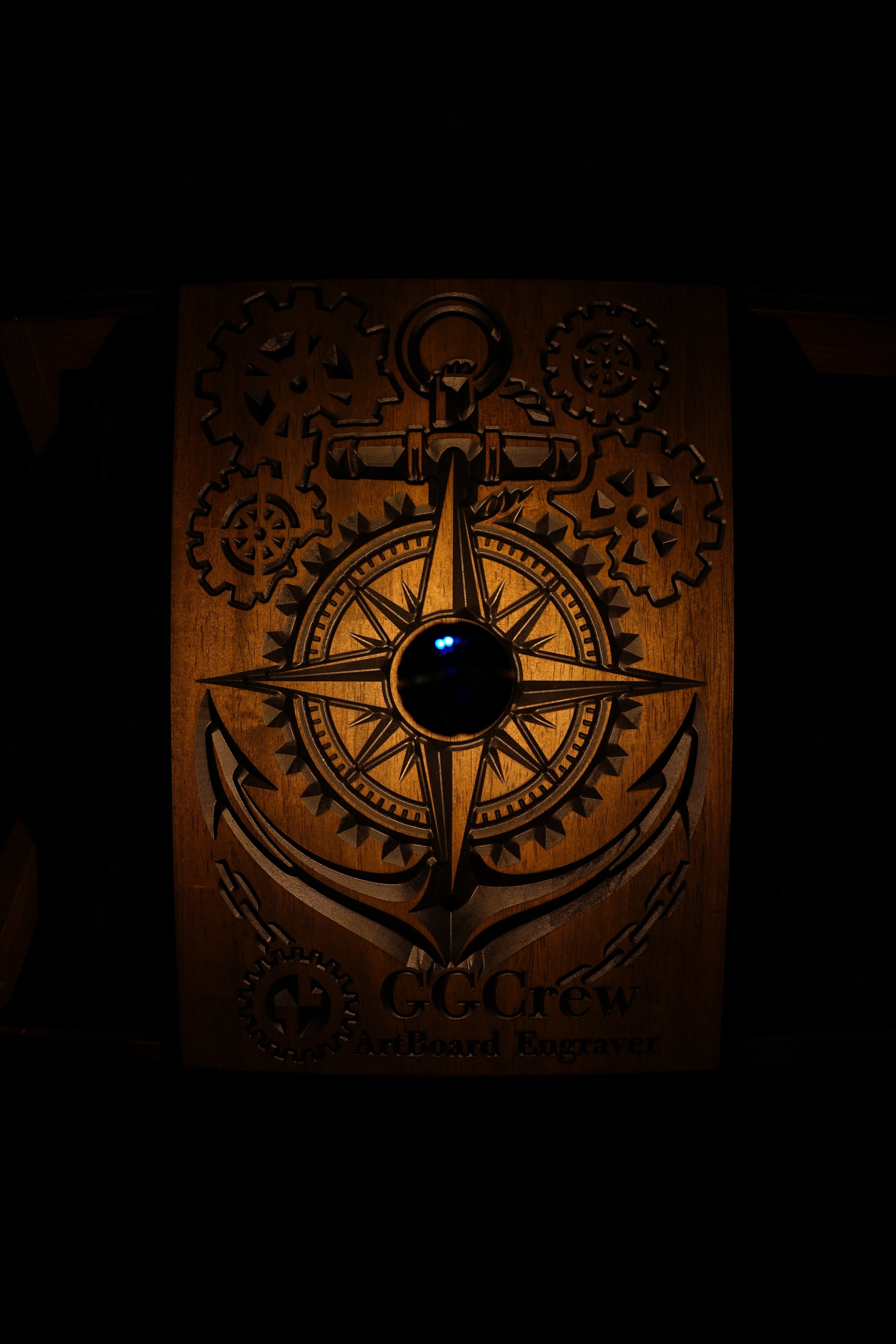 レーザーではなく刃物によって深く彫刻されたデザインになっているため、光の角度や影によって立体に見えるのが特徴です。