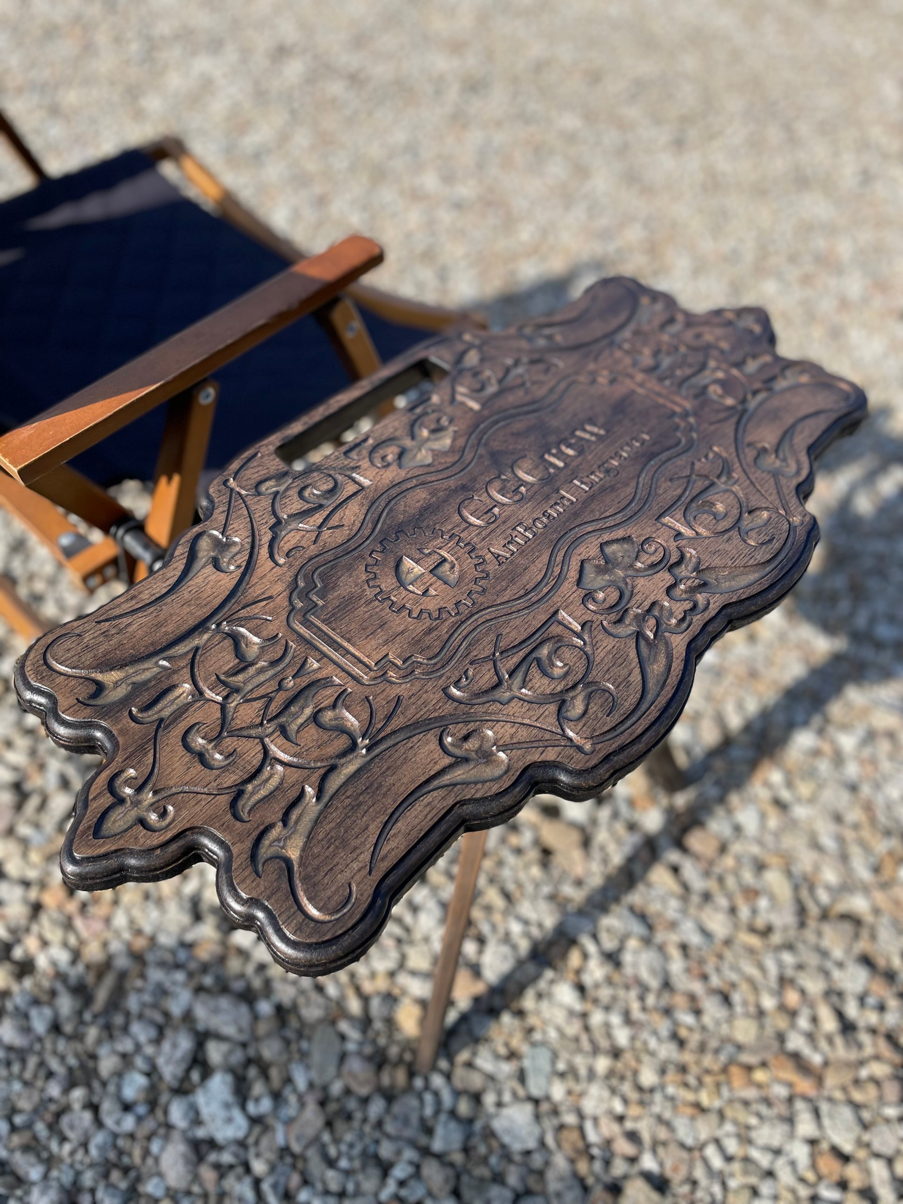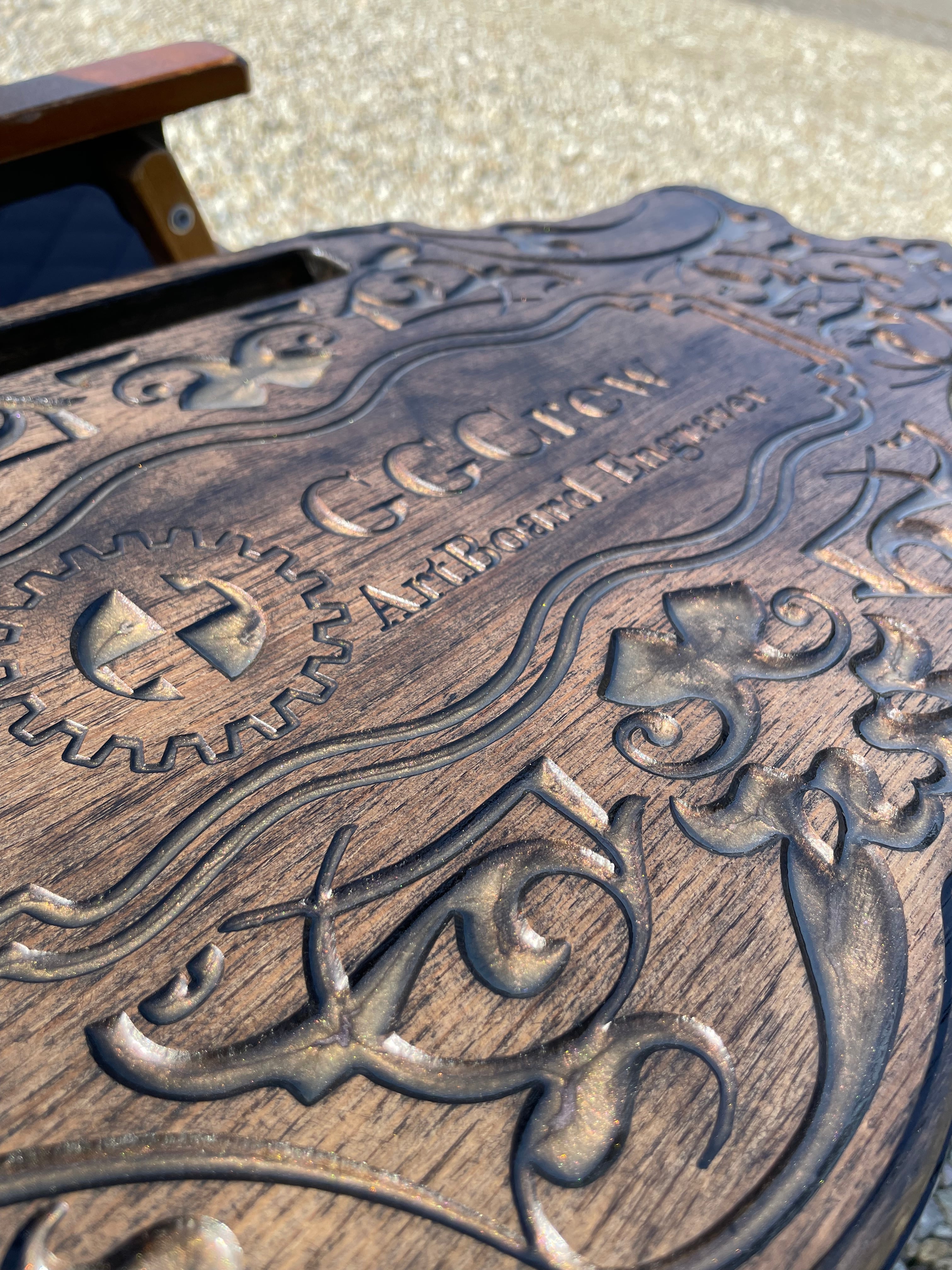 さらに、天板の彫刻部分には樹脂を流し込んで仕上げており、カラーは数種類ご用意。