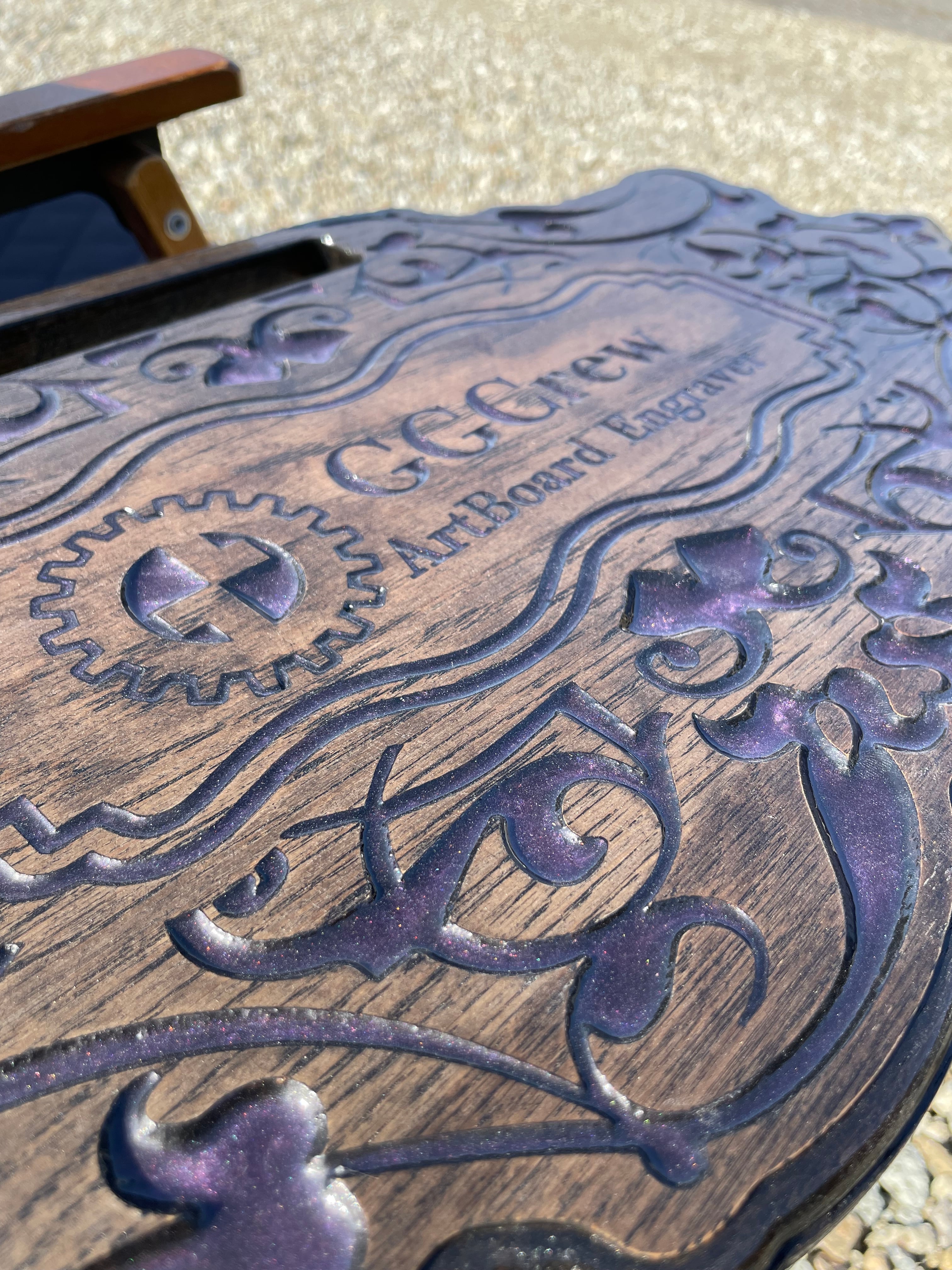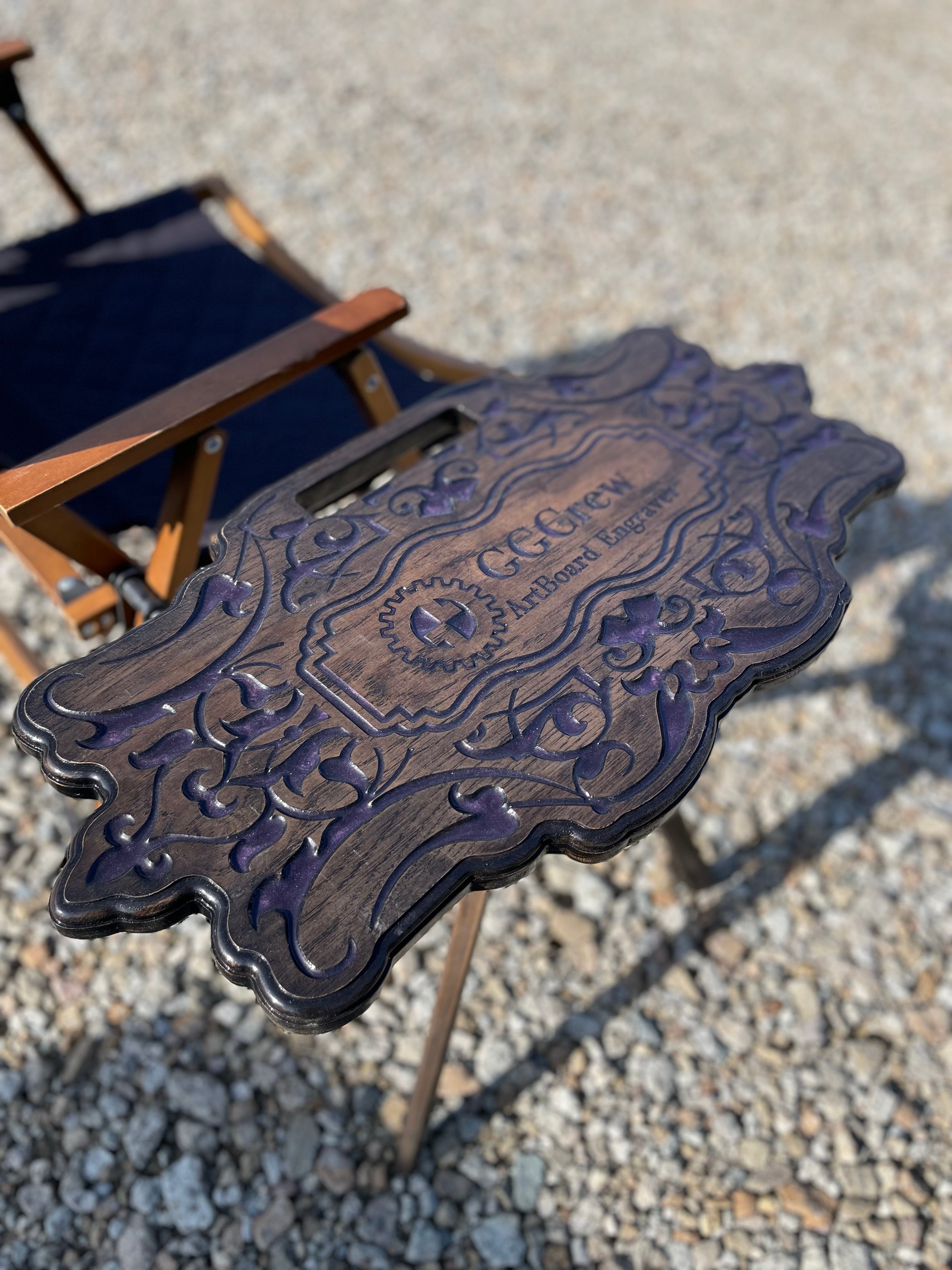 さらに、天板の彫刻部分には樹脂を流し込んで仕上げており、カラーは数種類ご用意。