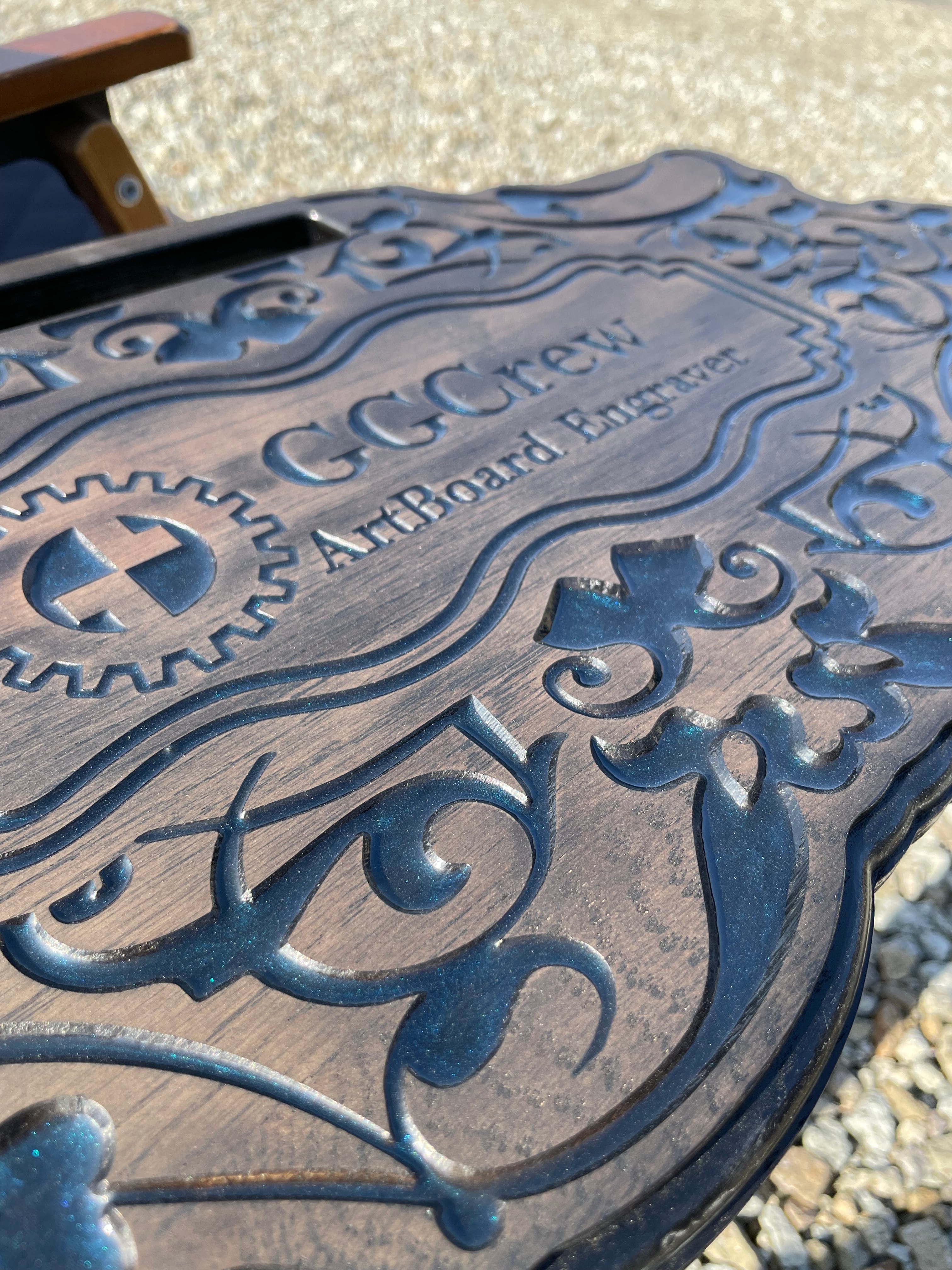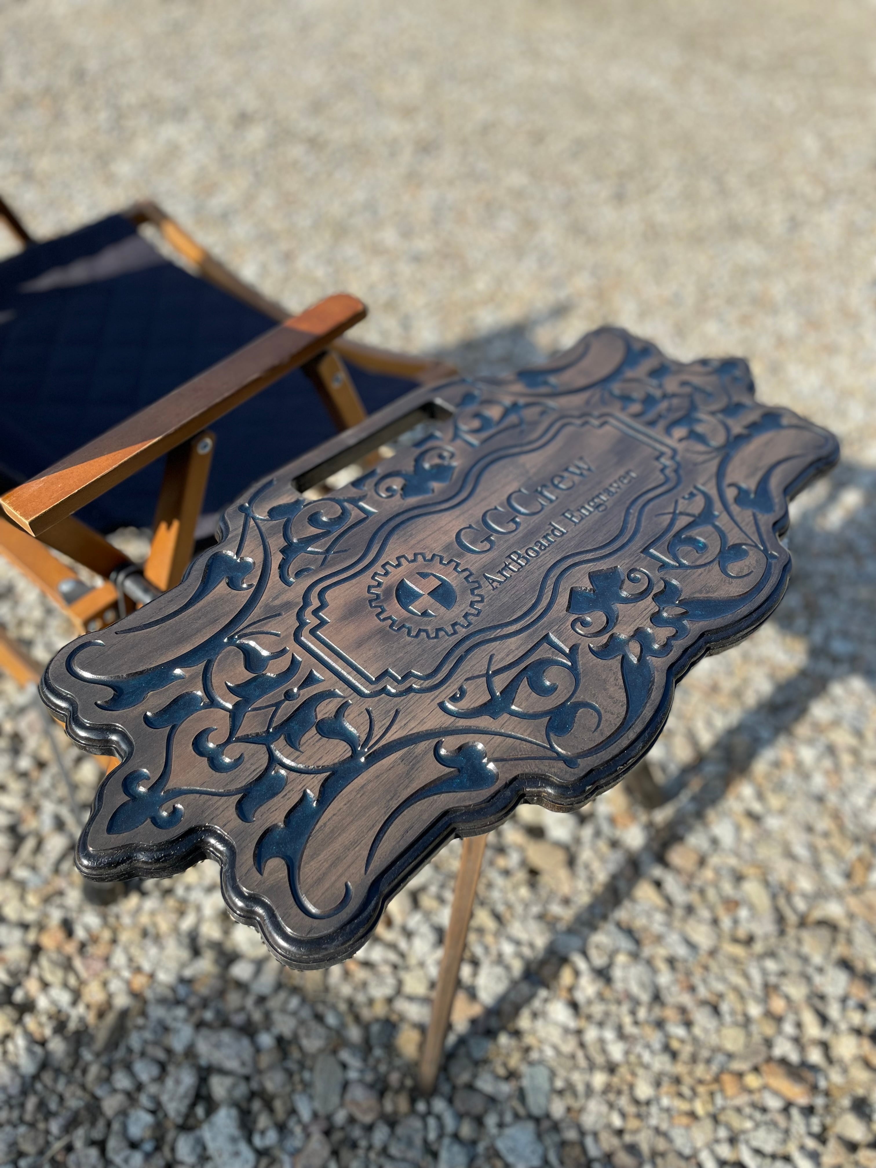 さらに、天板の彫刻部分には樹脂を流し込んで仕上げており、カラーは数種類ご用意。
